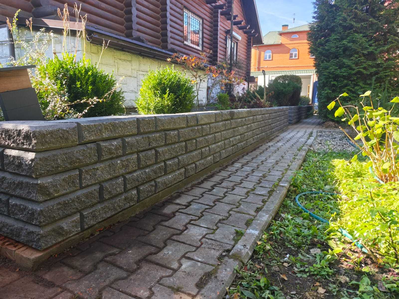 В Раменском районе Подмосковья наши специалисты возвели третью часть подпорной стены.